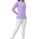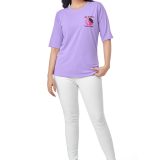 • Color: The t-shirt is a soft, light purple or lilac/lavender shade, which is a popular, gentle color.